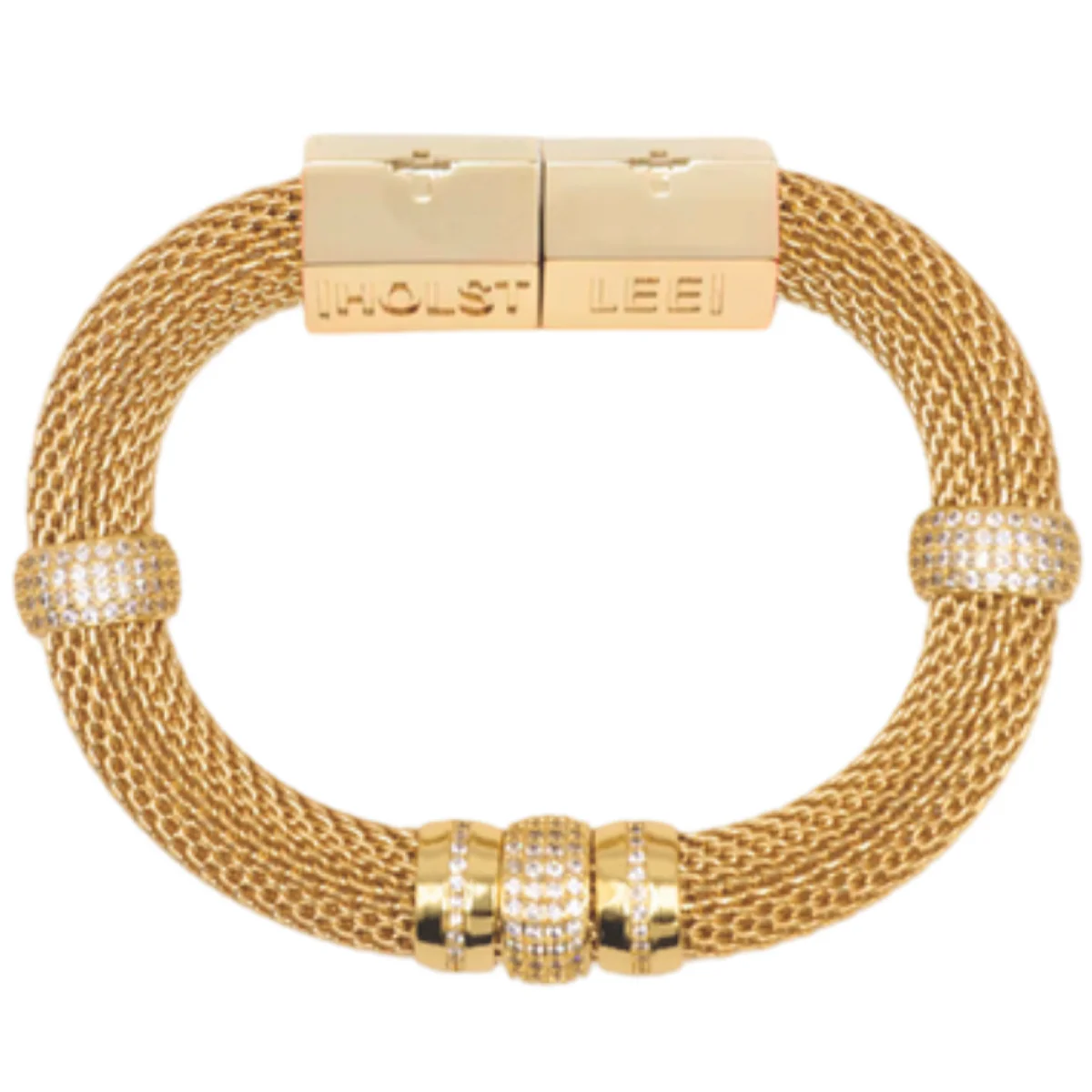 - Crafted with 18K gold-filled hardware, rhinestone embellished hardware, and our signature magnetic clasp.