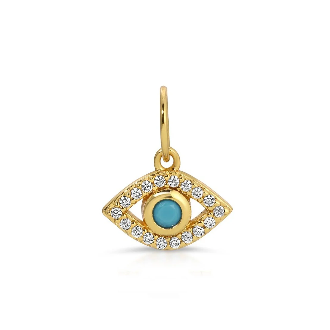 Regular price $39.00Charm; Evil Eye w/CZ settings and Turquoise bezel; 14K Gold plated Brass.