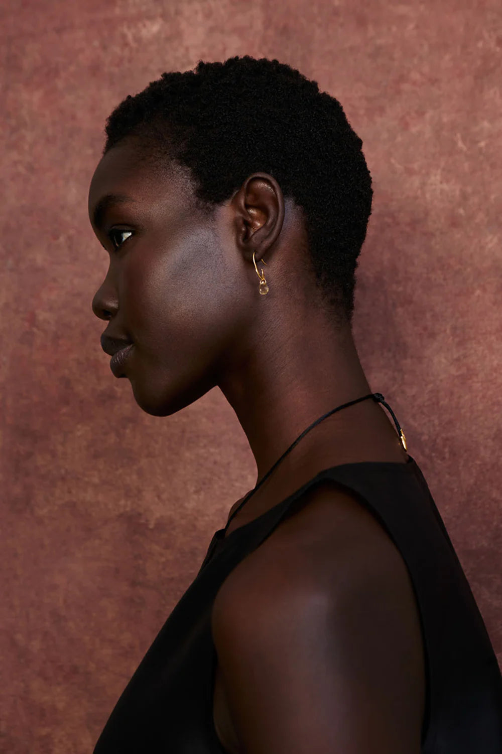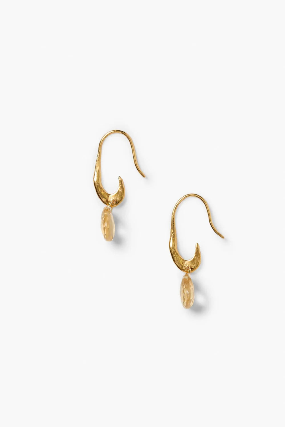 Regular price $95.00Tactile and surreal, the Gala Crescent Earrings present a fresh take on the classic hoop earring. Twin gold crescents are paired with citrine drops whose warm hues amplify the metal’s warm tones.