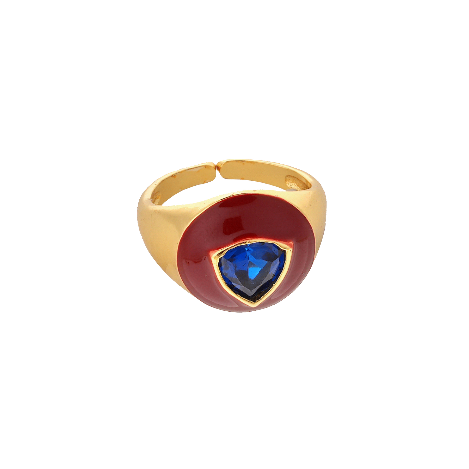 Regular price $48.00Make a statement with the Chana Adjustable Enamel Signet Ring in vibrant red. This eye-catching piece features smooth enamel detailing that pops against any outfit, while the adjustable band ensures a perfect fit for everyone. Whether you're dressing up for a special occasion or adding flair to your everyday look, this bold signet ring brings personality and polish to your style. A playful twist on a classic design that's ready to turn heads.