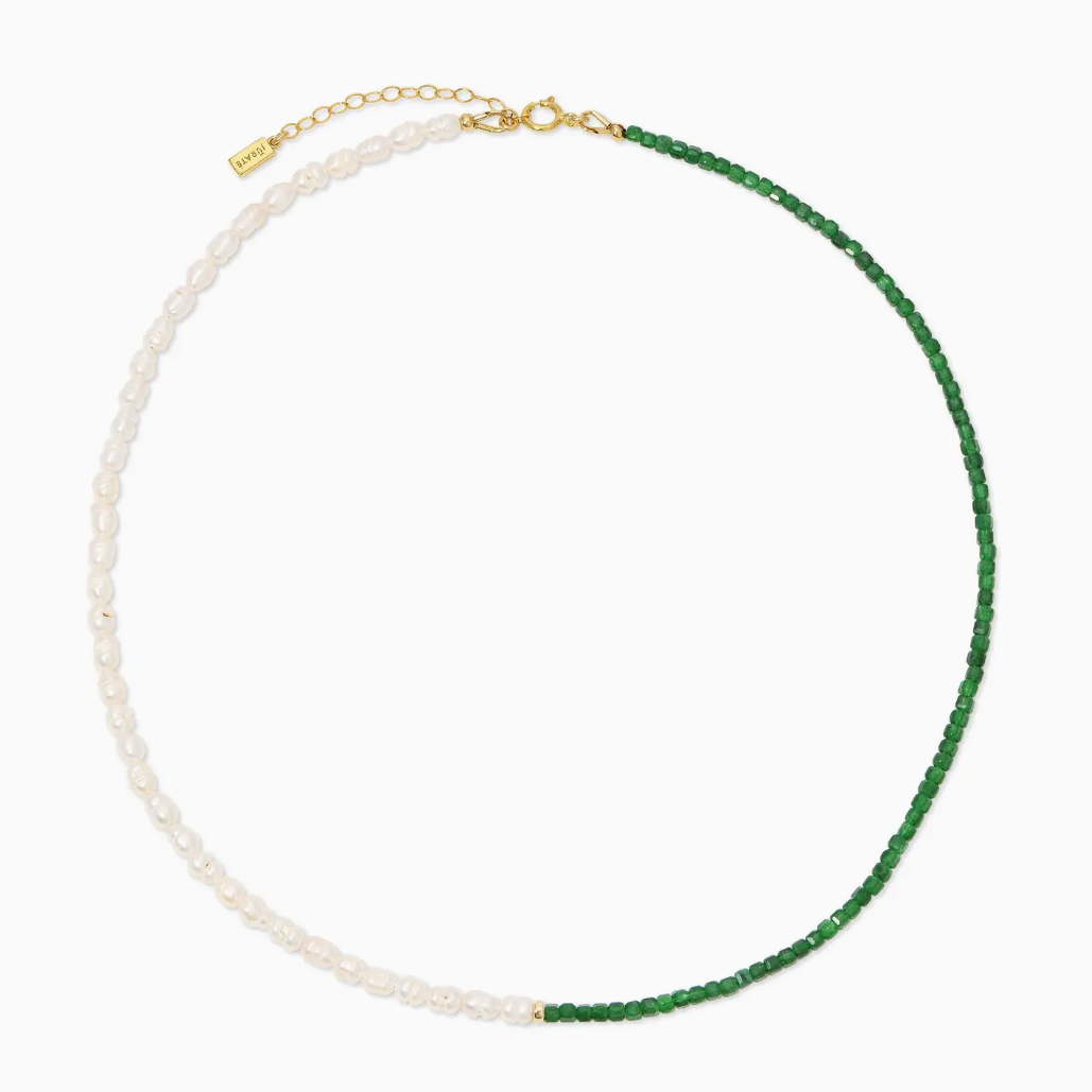 Regular price $92.00Upgrade your layers with Coraline Emerald! This necklace, handcrafted with natural stones and freshwater pearls, will elevate any outfit with its vibrant colors and sophistication. Get a fun and fresh addition to your collection with Coraline- a playful yet stylish blend. (We'll admit, we're pretty clever.)