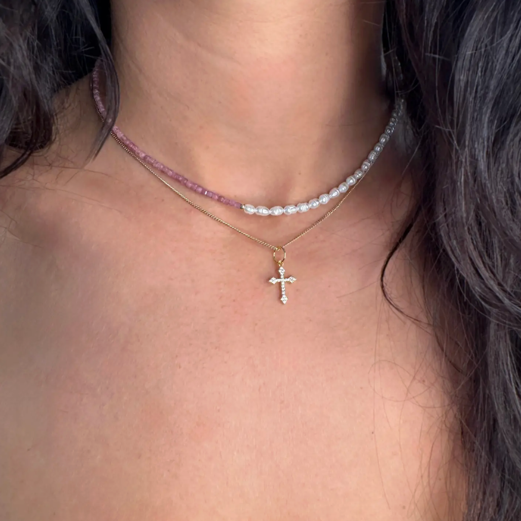 Regular price $92.00Upgrade your layers with Coraline Pink Tourmaline! This necklace, handcrafted with natural stones and freshwater pearls, will elevate any outfit with its vibrant colors and sophistication. Get a fun and fresh addition to your collection with Coraline- a playful yet stylish blend. (We'll admit, we're pretty clever.)