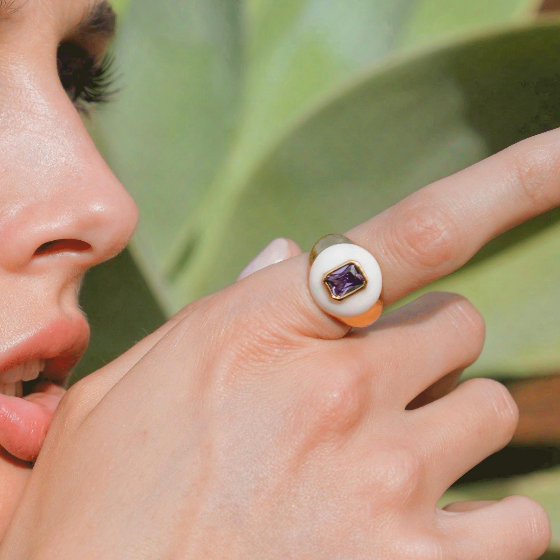 Regular price $48.00Slip on the Chana Adjustable Enamel Signet Ring in crisp white for understated elegance with a fun twist. The smooth enamel finish gleams with sophistication, while the adjustable sizing means it works for anyone. Perfect for layering with other rings or wearing solo as your go-to statement piece, this versatile signet brings timeless charm with a modern edge. Clean, chic, and ready to become your new favorite accessory.