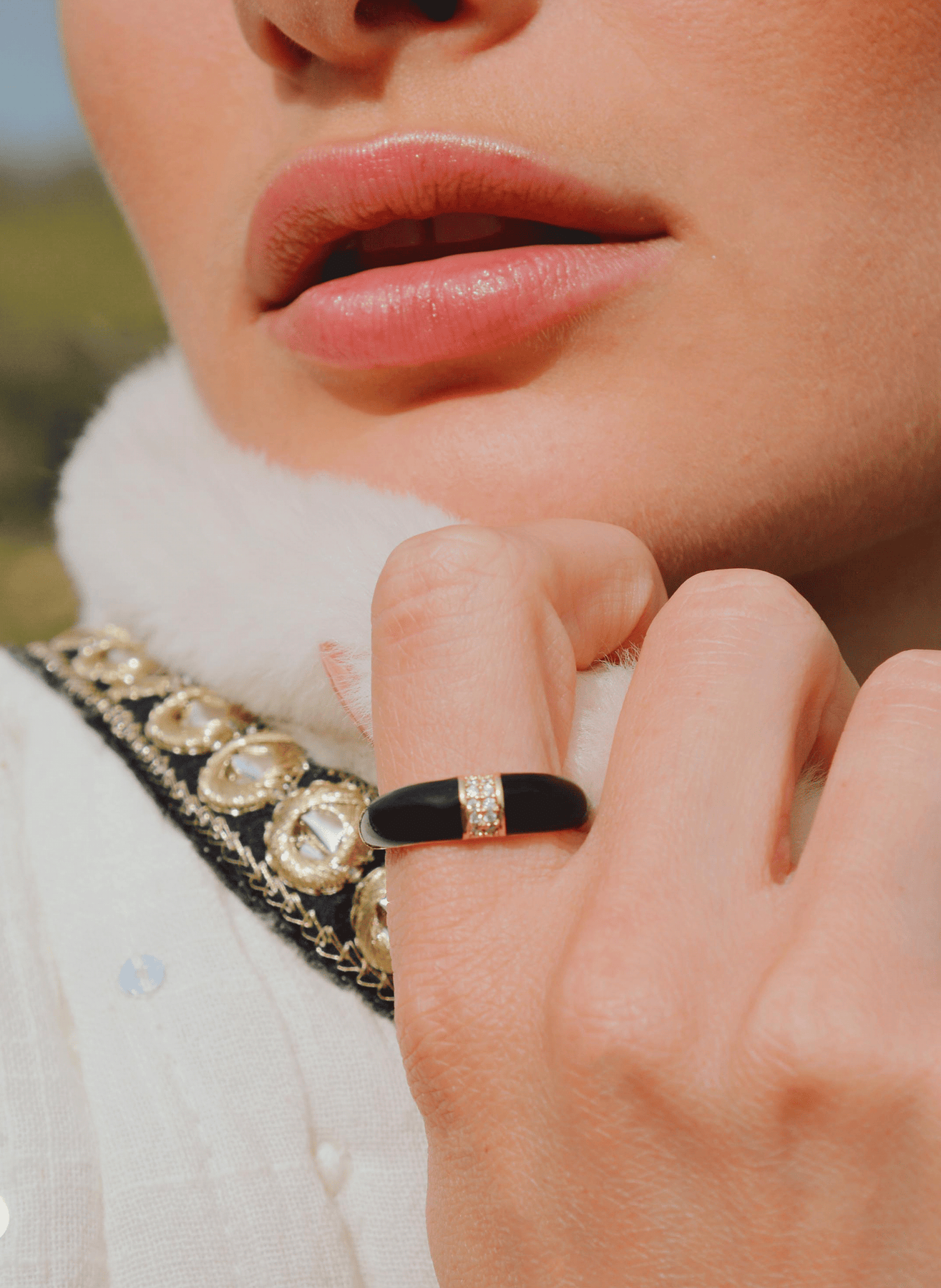 Regular price $48.00Meet the Dovima Adjustable Enamel Ring in sleek black—your new essential for effortless cool. This striking ring features lustrous enamel detailing that catches the light beautifully, paired with an adjustable band that fits just right. Whether you're channeling minimalist vibes or layering it with your favorite pieces, the Dovima brings understated edge and personality to any hand. Simple, bold, and endlessly wearable.