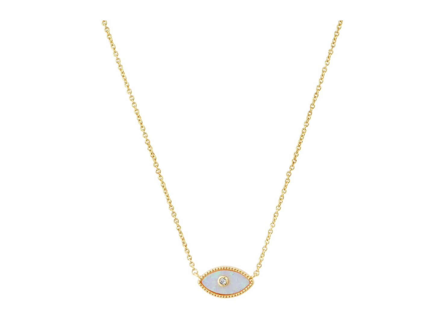 Add some sparkle to your day with this stunning Opal Evil Eye Necklace! A unique combination of classic design and modern style, its opalescent finish makes it a stand-out piece. Make a statement with this fashion-forward twist on a timeless classic.
