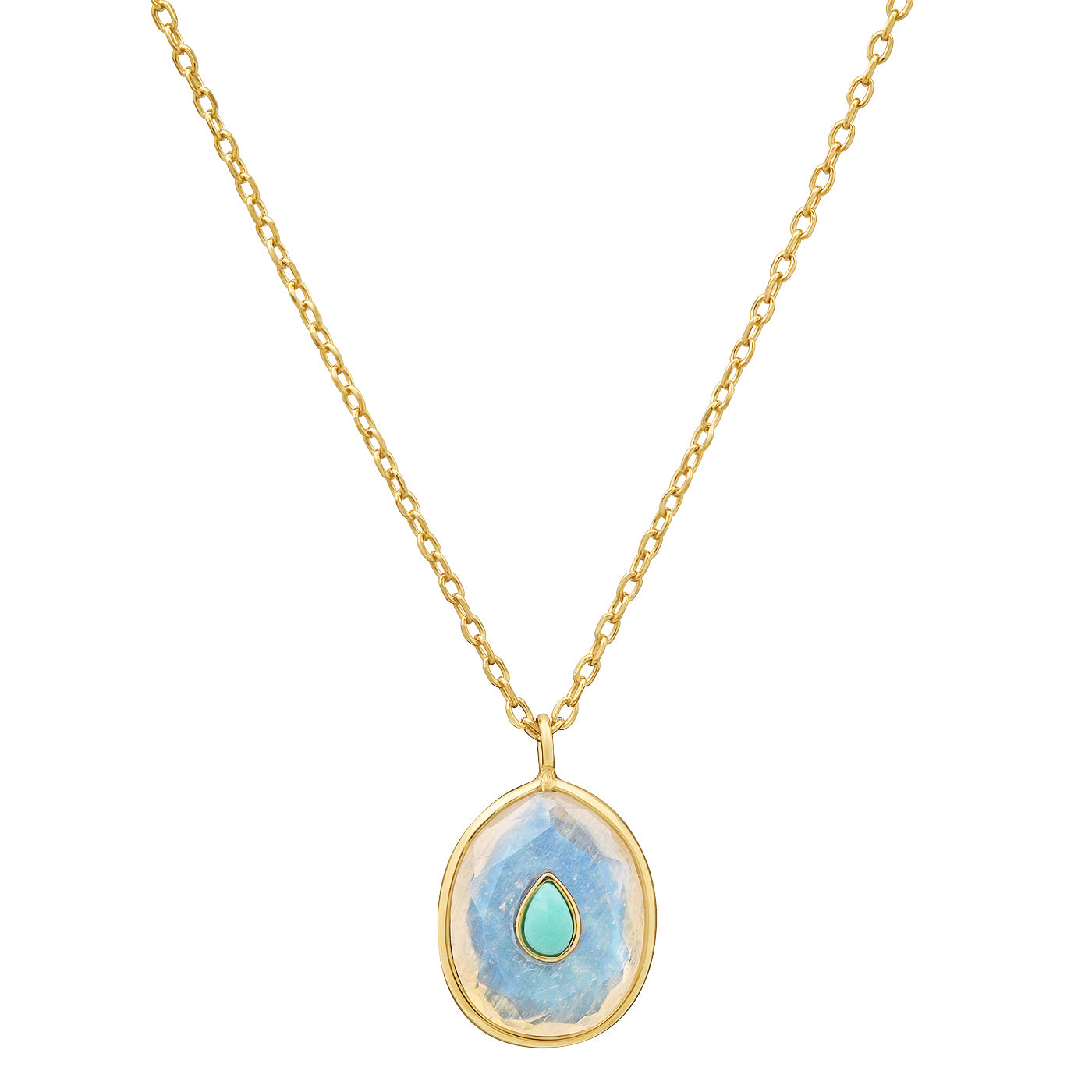 Tai Pearl and Opal Oval and Turquoise Tear Pendant Necklace