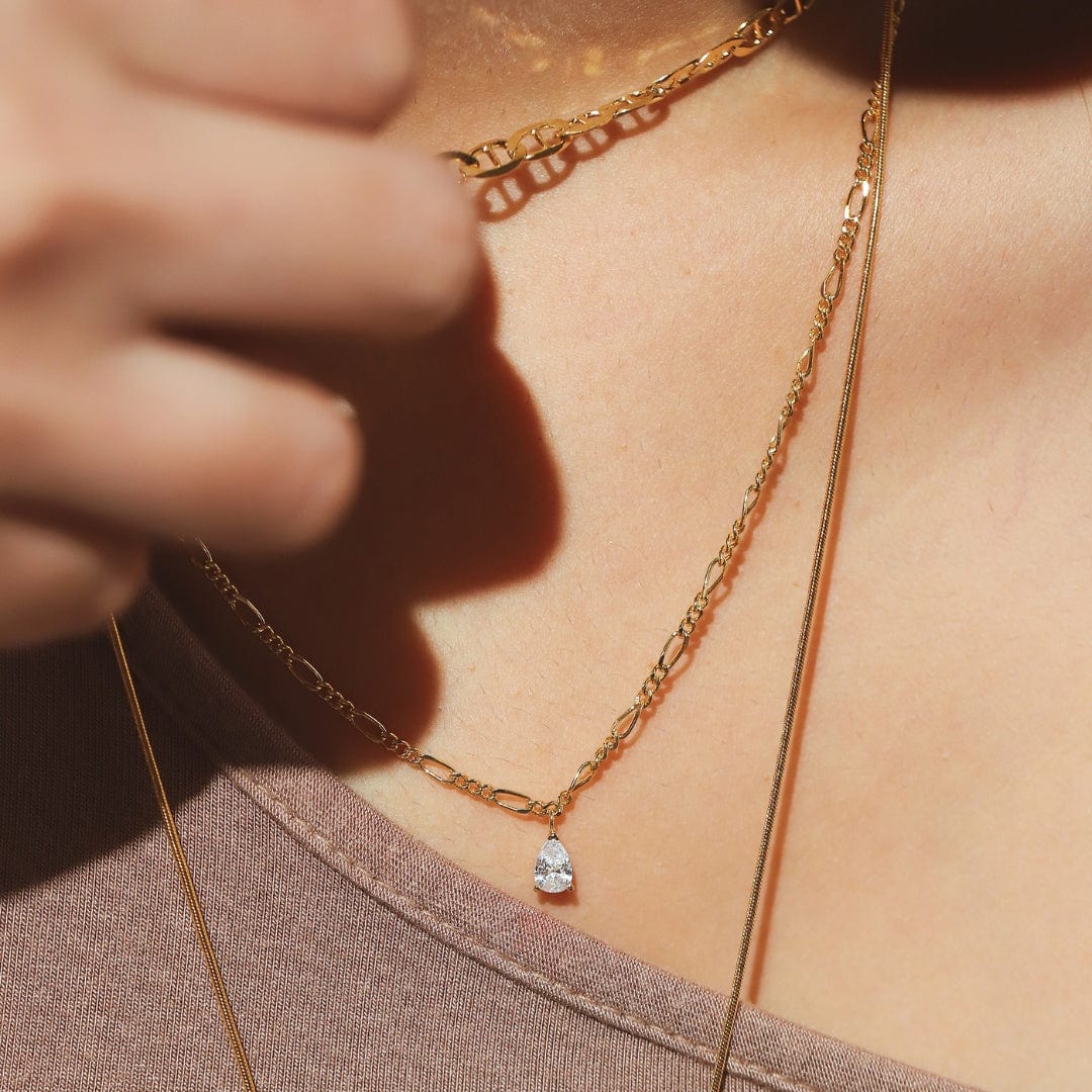 Tai Gold Figaro Chain w/Pear Shaped CZ Pendant