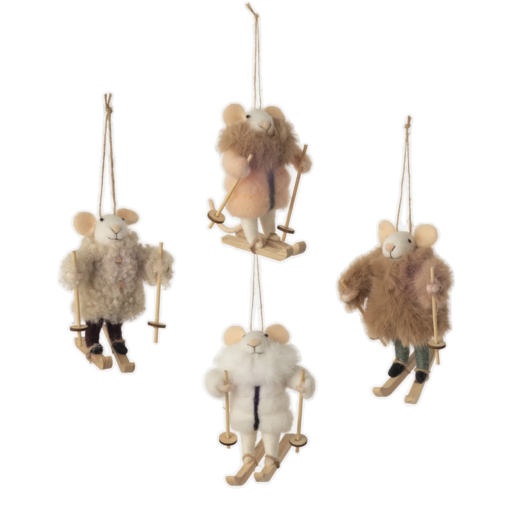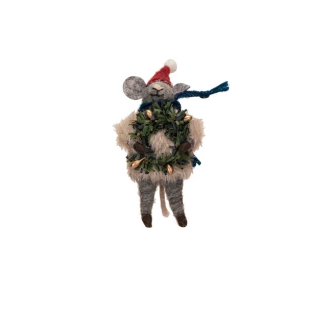 These ornaments are an adorable addition to any home during the holiday season. Made out of wool felt, faux fur, and Christmas lights, these cute mice ornaments come in 3 styles with festive sweaters: champagne, rose, or silver. These look great on any tree, and make decorating with friends and family fun!