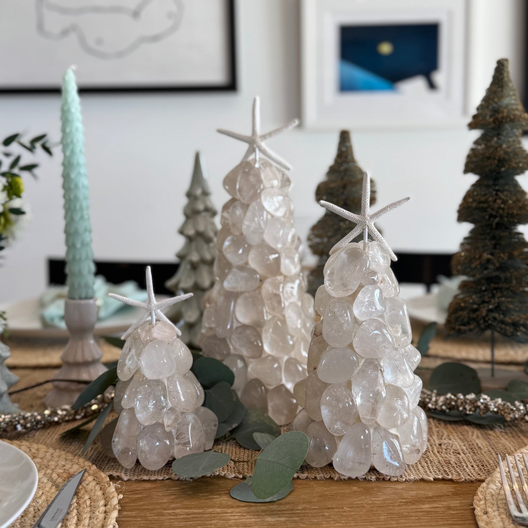 Artist Nate Ricketts and his small team of craftspeople make each of these trees by hand in his studio in Joshua Tree. They are beautiful on a mantle, a dining room centerpiece, or even on a powder room counter. And of course they make a beautiful gift.